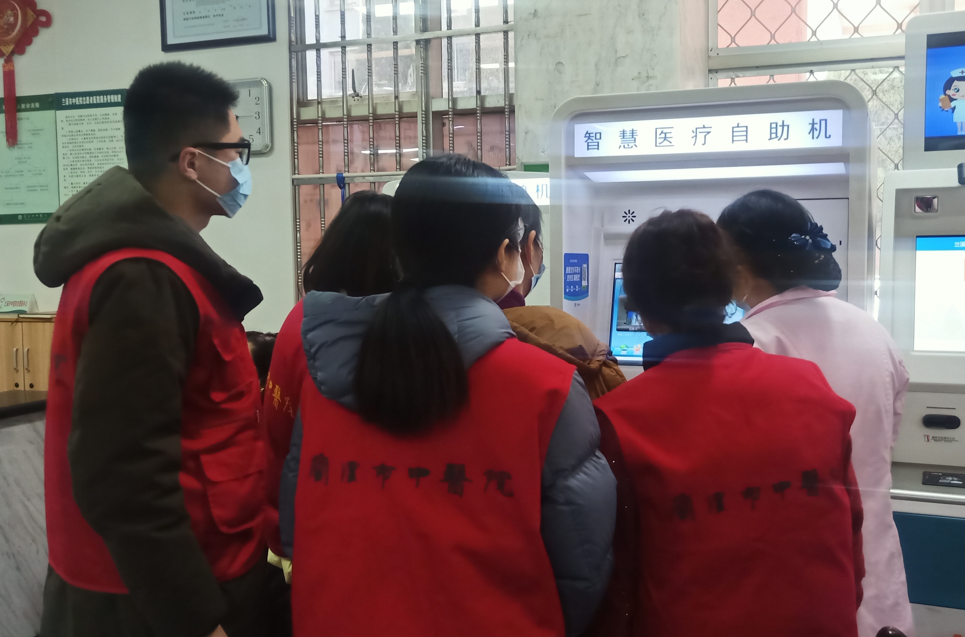 智慧医疗自助机是我院合理利用信息化手段改善就医流程,提高就诊效率的新渠道。该套系统实现了门诊挂号、14日提前门诊预约、发票清单查询打印、科室及专家查询等功能,最大限度的服务广大患者,简化就诊流程,提高服务质量,根据患者需求,该设备在全院各楼层多部位设置。义工们坚守在挂号自助机旁,为前来挂号预约的病患服务,协助他们使用机器查询、挂号、预约、打印发票等,耐心的告知使用方法,帮助其提前预约,让病人减少跑,同时避免患者就诊排队现象,加快就诊进度。