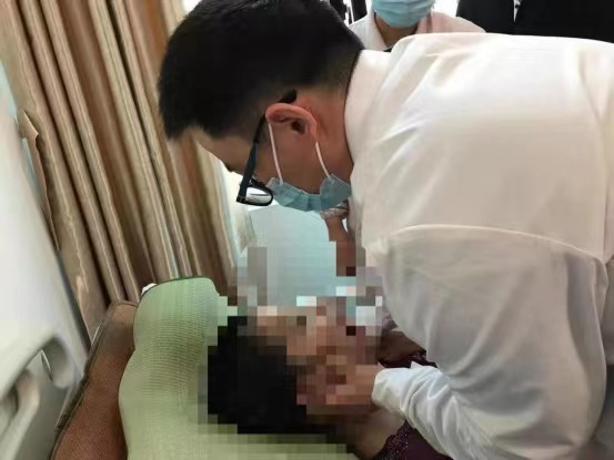 内科出身的小万医生立即拿起电话向医养结合团队求助。听完对老人症状的描述,刚值完夜班回家休息的急诊外科副主任周逸航二话不说,立马驱车赶到养老中心,为老人进行了下颌骨脱臼复位。所谓手到病除,经过周副主任的手法复位,老奶奶的下巴立刻恢复正常,虽然意识不清也流出笑容,还吧唧了嘴巴,阿姨赶忙喂上水,奶奶咕噜咕噜喝了几大口“奶奶嘴巴合上了,能喝水了!”