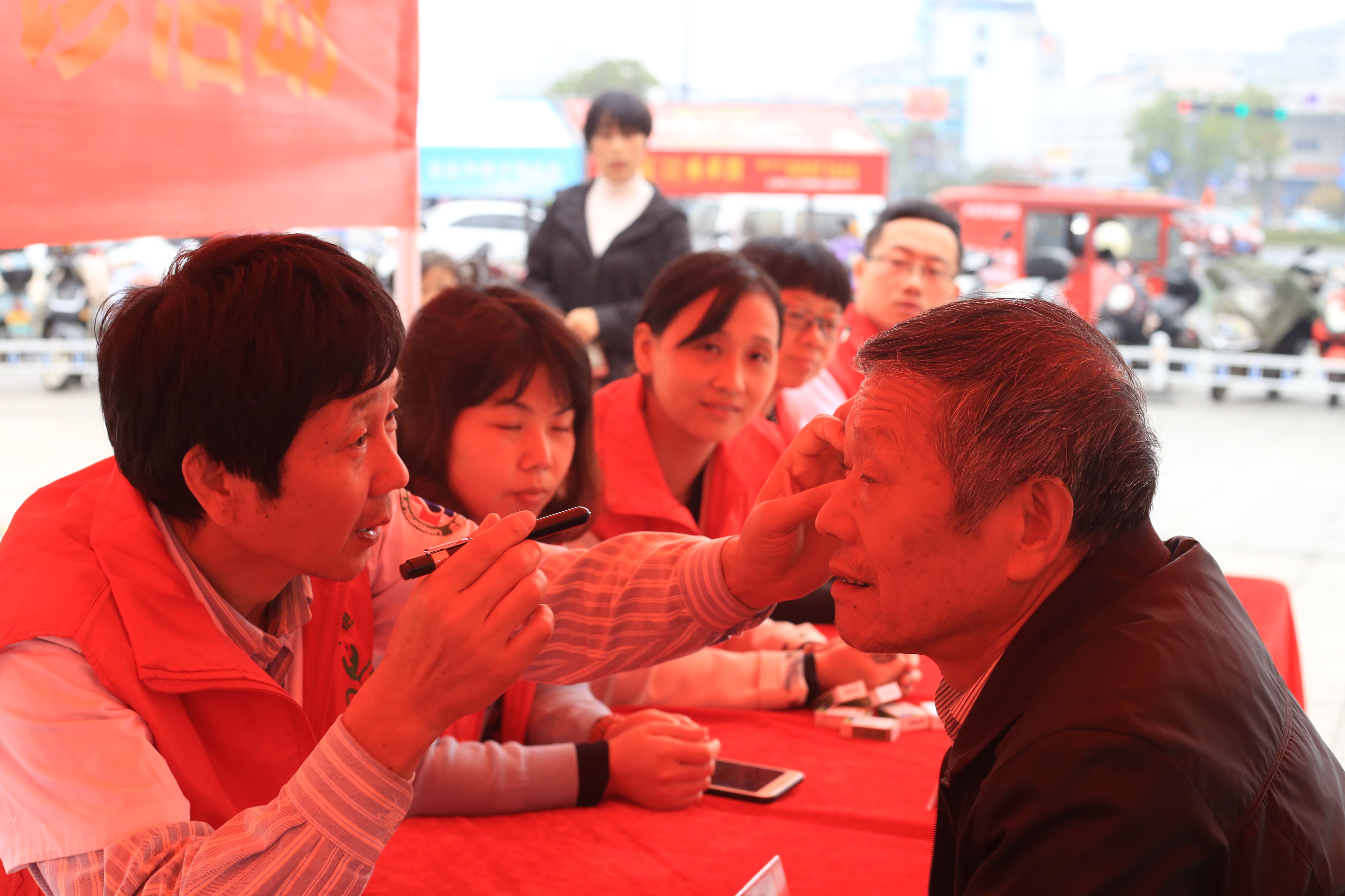 本次活动项目分工明确,前来咨询的兰溪市民络绎不绝。先是测量血糖及血压等基础体征,后有中医康复医师及营养师向广大居民群众普及中医预防保健知识,以及冬病夏治、冬令进补等中医特色项目;接下来是娴熟的中医推拿技术及针灸实操,同时给来诊的群众讲解颈肩腰腿痛病的日常保健。妇科及儿科医师负责妇儿健康咨询及免费发放非处方药品。口腔科医师提供口腔检查和龋齿、牙周病的防治措施。五官科医师为群众进行五官辨识及功能评价。